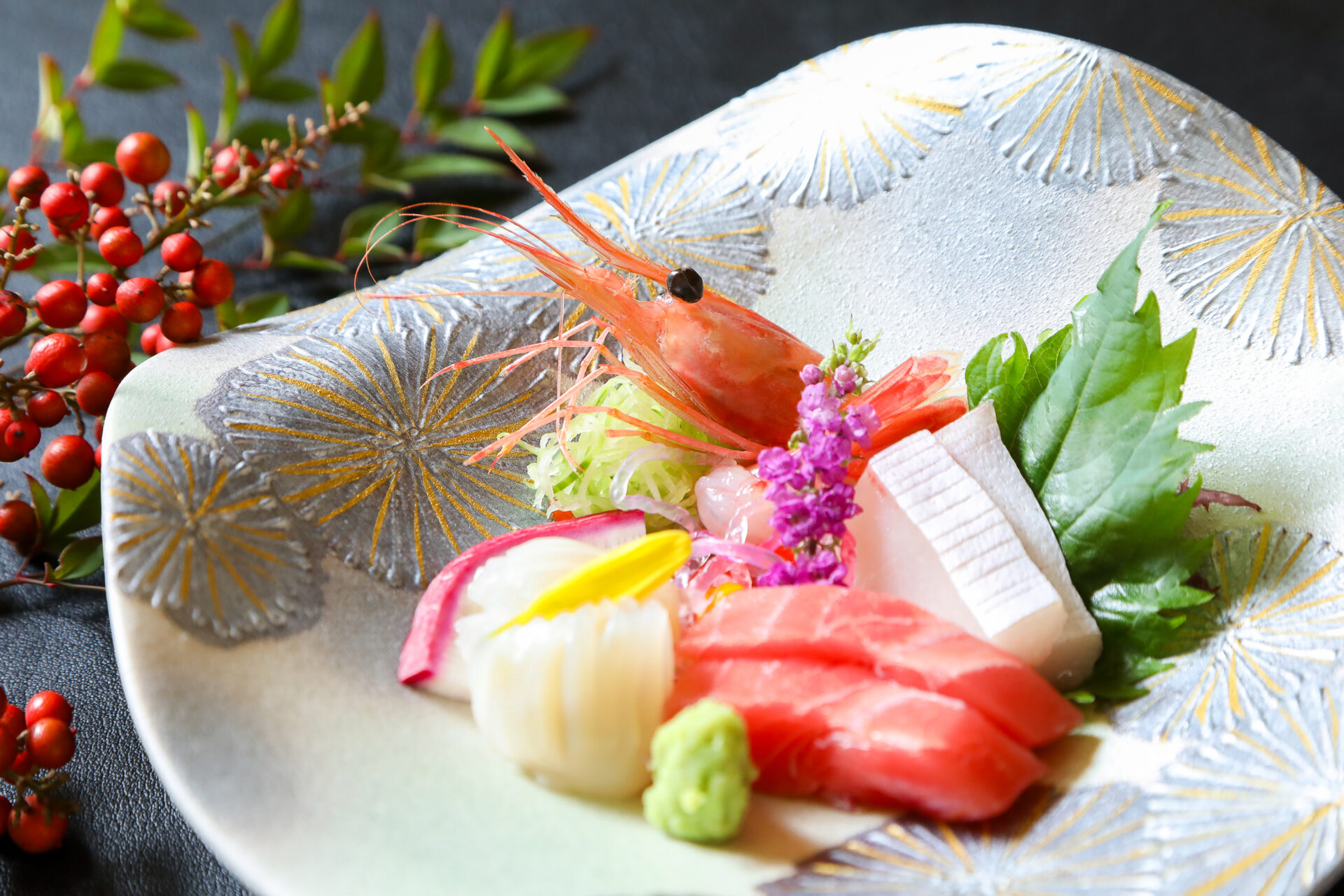 越前の新鮮な海の幸を堪能できるお造りのコースです。季節によって変わる旬の味をお楽しみください。